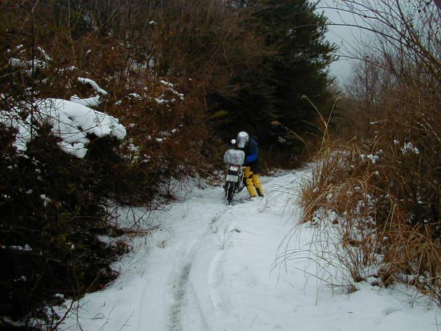 林道を進めば進む程雪は深くなり、もうすっかり