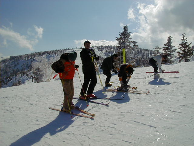 - バスで高天ヶ原へ移動、リフトぎりぎりまで滑べる