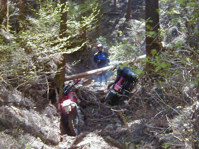 最初の登り(道幅50cm位で右が山、左が崖)で右足がツッテしまいまたエンスト。