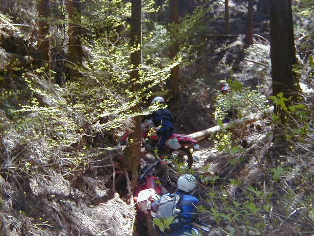 2度目は舗装路から入ってすぐの所でやらかしたので、結局一人舗装路に戻って 取り敢えずなんとかエンジン掛けて集合場所に戻る(他の人はアタック) という羽目に。