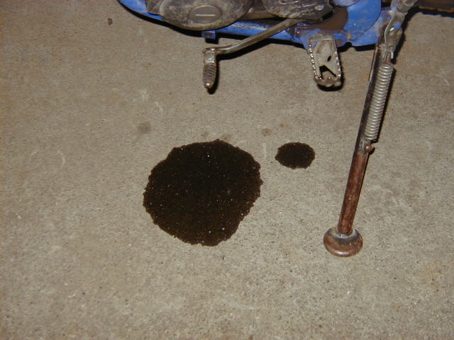 おかしい、先日まではオイル滲みなんかなかったのに…… まさにエンジンから洩れている様な感じ。 屈んでそれらしき近辺を、よーーーく見てたら、