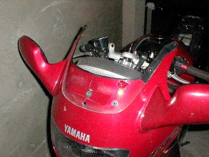 蘊蓄:この弱いプラネジ、事故とかで体が前に放り出されたときに、首がスクリーンに引っかかって死ぬのを防ぐために、何かあったときはスクリーンごと吹っ飛ぶように弱いネジで留めてあるのだ。お洒落でカラーアルマイトのネジとかに換えるやつも多いけど、命が惜しかったらやめておけ。