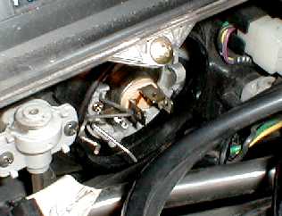 (これは98GB仕様の取扱説明書に載っている交換方法です。実際にはライト下のネジをコインで回して開ければ左右ともバルブ交換は可能です。本来このように交換するように設計されていると思われますが、何らかの問題が発生して取扱説明書の内容が変わったと考えられます。実際この手法だと、完全に手探りになってしまいますので、初めて行う場合、一度は取扱説明書通り上から覗いて作業をすることをお薦めします。)