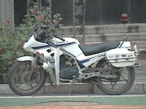 。形式不明。CHANG???(長江)とかいうとこのやつだと思う。でかいのは長江の750で側車付き。結構見かける。YAMAHAのXZ400Dだろーと思われる白バイも見かけた。