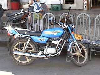 元はSUZUKIらしいが、上海当たりでライセンス生産されたらしい別の名前のエンブレムが付いてるやつの方が多い。色は圧倒的に青が多いな。