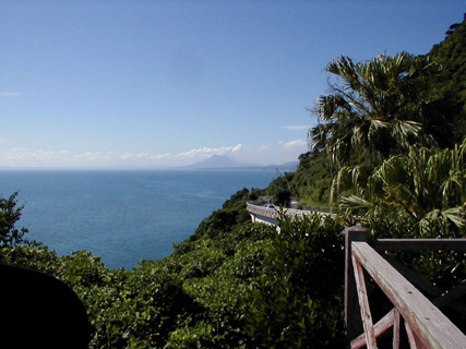 鹿児島湾越しに薩摩半島を望む。