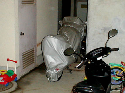 それでも十分強い風の中をヨタヨタ切り返していたら同じ社畜^H^H社宅のミヤモトさんが「こっちに入れたら?」とナイスアドバイスをくれたので、従って奥へ移動。