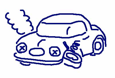 なんか、漫画に出てくるぶっ壊れたクルマみたいに、左前輪が斜めに飛び出てなんか部品が突き出て、