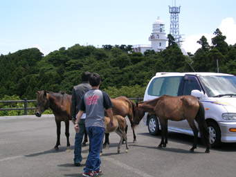 馬も駐車場でお出迎え