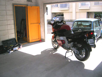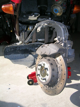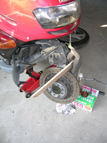 まずはFスイングアームをジャッキアップしてFホイール外す。