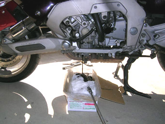 流石に楽勝ですがな。センスタからサイドスタンドに掛け替えて、さらにバイクを傾けて全部オイル出し切るまでやりましたさ。