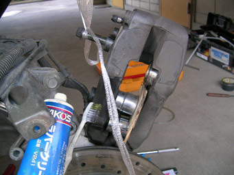 何とGTSには純正のエア抜き補助具がある。キャリパーを縦に固定するアダプターらしい。