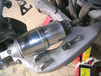 ホルツのエンジンクリーナーなる強力洗剤で面白いように落ちた。でもコレでもチェンカバーのデロデロなんかは落ちなかった。バイオクリーン