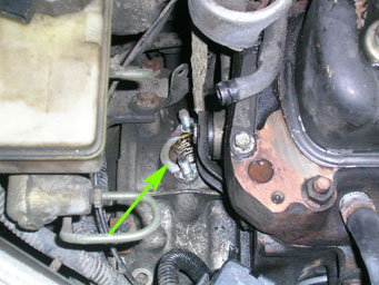 これらのセットをボルト(薄い灰色)でエンジンブロックに固定する。小ワッシャ(ボルトの頭の次の灰色の小さいやつ)、アースコード(青色)、ブラケット(緑色)と共締めする。