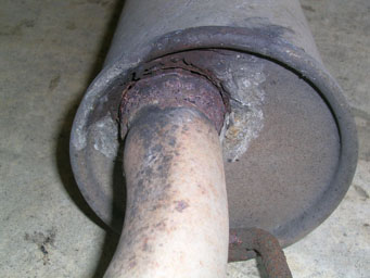 外したマフラーは随所が朽ち果てていて