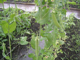 先週はサヤもありませんでしたが、もうしっかり太ってます。下から順に花が咲いて実がなっていくので、どんどん取らなきゃなりません。置いておくと硬くて食べれなくなってしまいます。