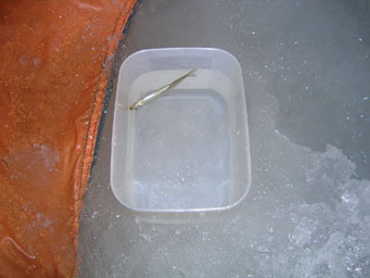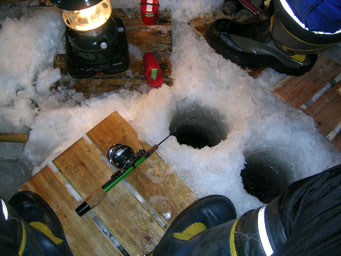 1月末頃、無事に解禁されまして(乗っても大丈夫なくらい氷が厚くなったので)、職場の物好きオヤジ達も解禁日から早速会社を休んで繰り出していましたよ。