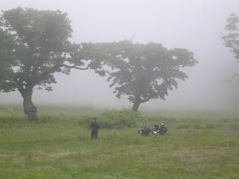 標高はまた1000mを超えて雲の中。何も見えないし電波も入らないし。