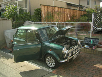 Heynesマニュアル(素人Mini整備の定番の市販マニュアル。日本語版だけど、直訳っちいというか、思想が英国人的で、トホホなマニュアルです。例えば、「○○のバルブはココです」みたいに写真があるけど、全体がアップでそれじゃどこだかわかんねえよ! みたいなね)見ながらどうにか問題の場所の目星を付けて、現物の確認から始めます。