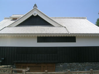 城というと白壁に黒っぽい屋根というイメージだけど、熊本城は黒基調の壁に屋根瓦が白い漆喰で固められてるので逆に見えます。