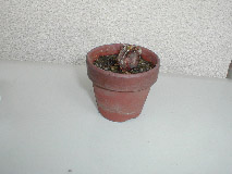 2004年1月28日 休眠期にやるべきじゃないんだろうけど、あまりにも元気が無いので植え替えてみた。 腐った根を切ってリフレッシュ。根をオーソサイドで消毒。基肥に油粕。 鉢を塗ったのは御愛敬。あんまり格好良くないなあ。 ちなみに1月中旬から冷え込みが厳しくなってきたので室内に入れたのです。 |