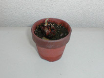 2003年6月21日 春に軽く土に空気を入れて水はけを確保し、たまに液肥をやっておいた。 芽が2本伸びてきたぞ。 |