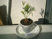 2002年7月7日 今年になって生えてきた新しい葉は、室内に置いておいたので日照不足でだらしなく伸びてしまった。 |