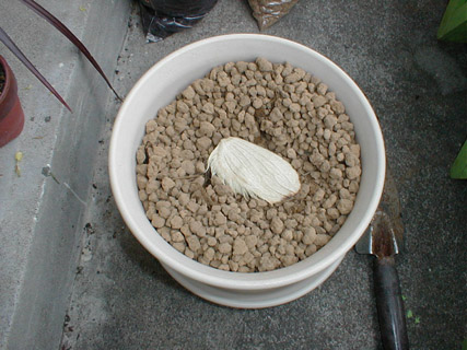 ![]() 情報通り赤玉土と腐葉土で。土は痩せてた方が良いとの 噂もあるので腐葉土少なめ。なんか用意した腐葉土の熟度 も不足気味に感じるのであまり多量に入れたくない。 |
