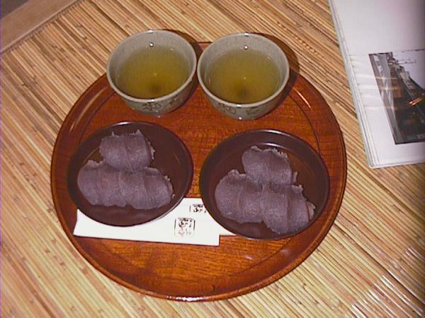 お茶はねえ、酸味がちょっと強くてきっとお茶だけで飲んだらうまくないんだけ ど、赤福とのマッチングはべりぐ。赤福はねえ、ちょっとあんこが(わしには)甘 かったけど、餅が激うま。