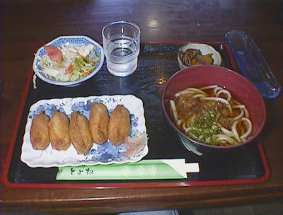 いなり寿司とうどんセット。850円くらいかな? たけーす。